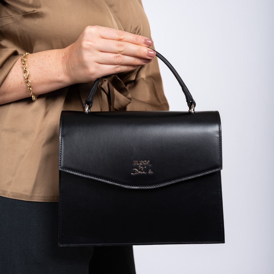 Kabelka je navržena tak, aby poskytovala dostatek prostoru pro vaše nezbytnosti. Uvnitř je pouze zipová kapsa pro drobnosti. Na zadním díle, ale najdete praktickou přihrádku pro uložení telefonu. Kabelku můžete nosit v ruce, díky držadlu s výškou 10cm, nebo jako crossbody s nastavitelným popruhem, který lze prodloužita až na délku 130cm. Jemné stříbrné kovové logo ELEGA by Dana M. zdobí přední díl.