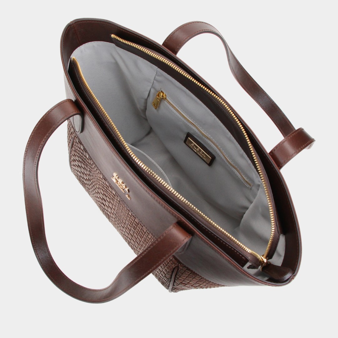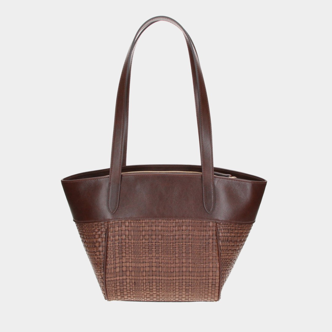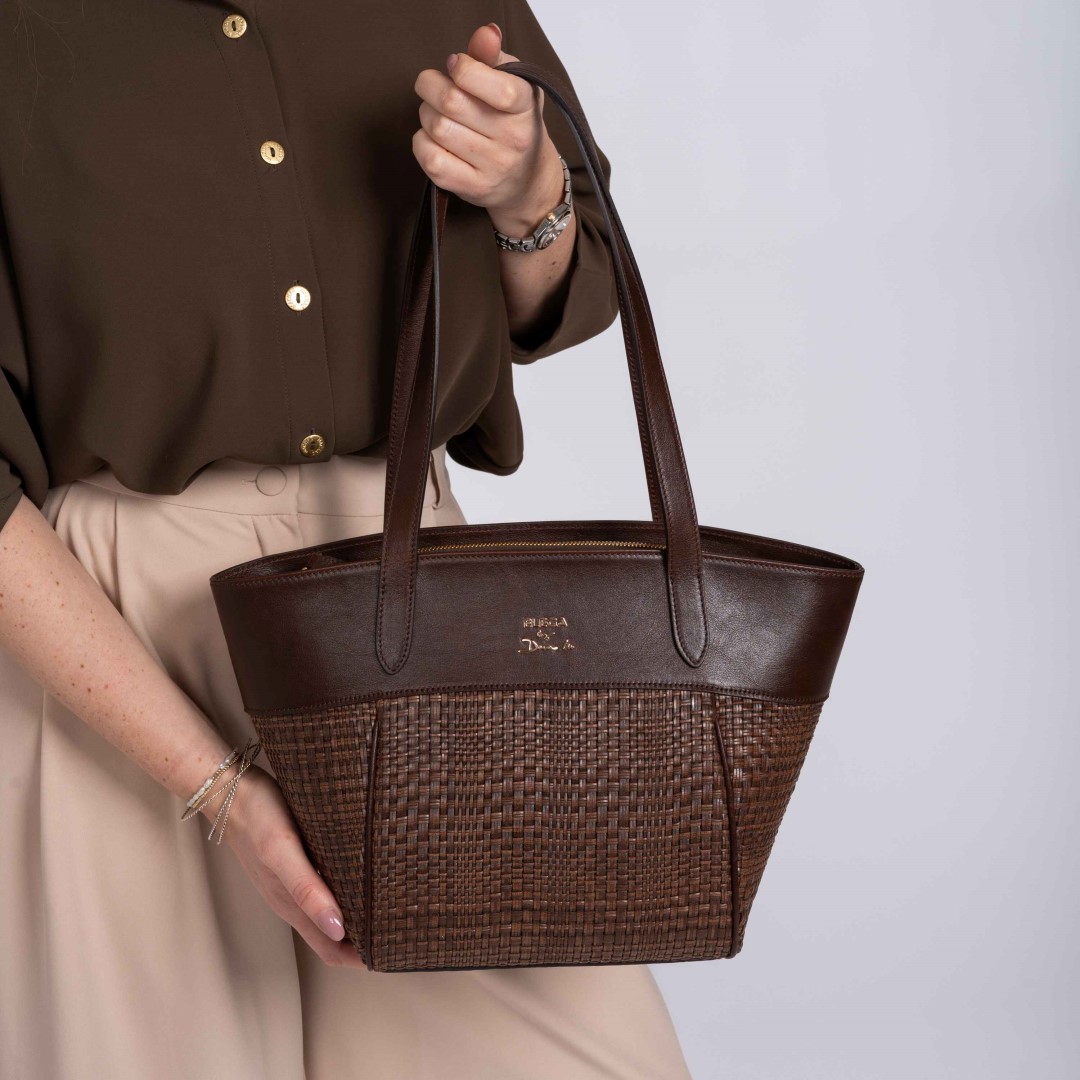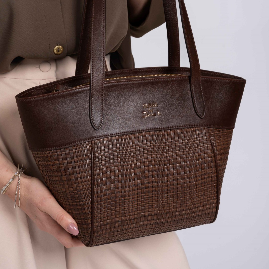 Barevnost v jemných tónech kávy skvěle ladí s letními materiály jako len, bavlna nebo vzdušné šaty. Tyto kožené kabelky kombinují proplétaný materiál ze Španělska s hladkou telecí kůží, čímž vzniká originální textura a nadčasový vzhled.