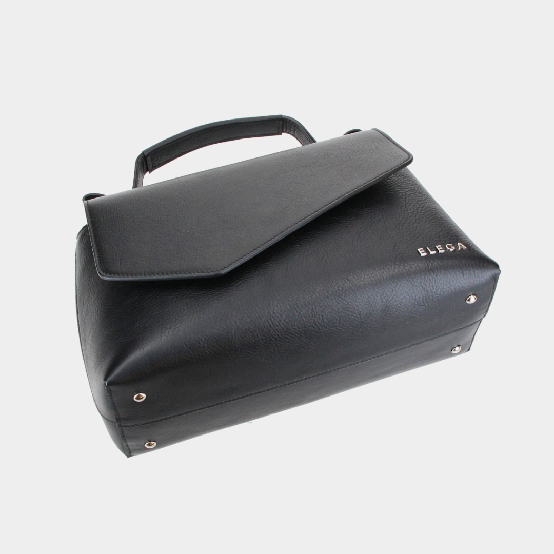 Kabelka pojme dokumenty o velikosti A5. Má pevný tvar, uzavírá se klopnou na magnet a lze nosit v ruce i jako crossbody, díky dlouhému posuvnému držadlu s max. délkou 125 cm. U vrchního držadla jsou ozdobné "vlnky", díky kterým si můžete na kabelku připnout přívěsek či protáhnout ozdobný šátek, který pro Vás máme jako novinku! Logo ELEGA je umístěno v pravém dolním rohu.